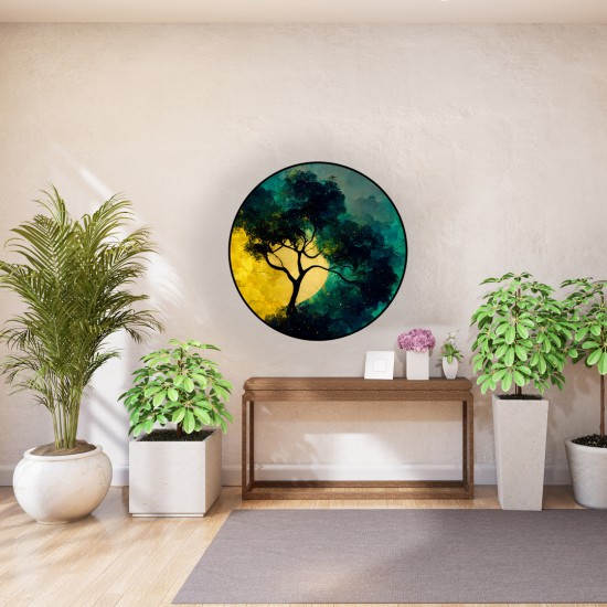 Doğanın Sade Yüzü Metal Çerçeveli Yuvarlak Cam Tablo