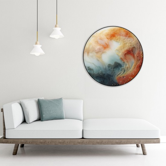 Mavi Rüzgar Metal Çerçeveli Yuvarlak Cam Tablo